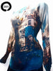 Il capo in foto è sviluppato in fondo beige e fantasie geometriche in vari colori